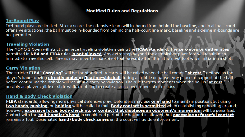 The MOMO 1 (M1) Open, isn’t your typical four-quarter basketball tournament game — it’s a fast-paced featured showdown played in a single round. With unique rules designed to reignite the thrill of the game, emphasizing to Make Offense MOve (MOMO), defense, teamwork, and smart play-making, every possession counts and there’s no time to hold back.